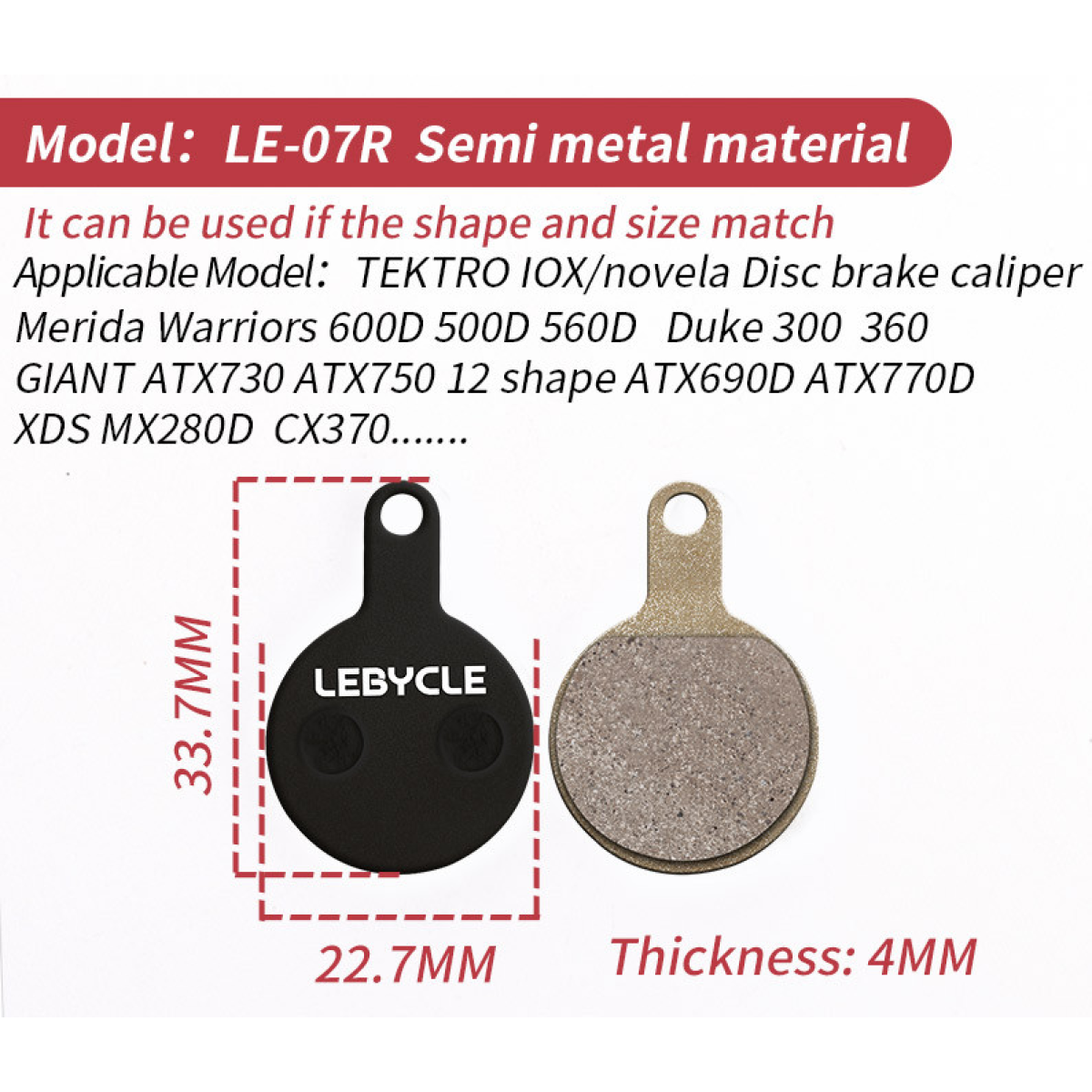 Дискові гальмівні колодки Lebycle LE-07R напівметал для велосипедів, TEKTRO IOX/novela Disc brake caliper Mer