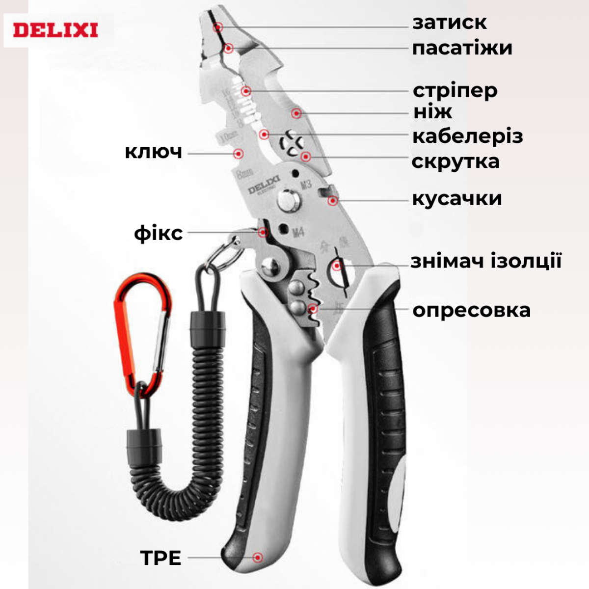 Багатофункціональні плоскогубці DELIXI DWGR 3627 - це незамінний інструмент для всіх, хто працює з електричними проводами та бажає заощадити місце у своєму наборі інструментів. Ці універсальні плоскогубці об“єднують в собі 6 функцій в одному інструменті, роблячи його ідеальним для різних видів робіт.